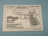 Verkaufe eine seltene, originale Bedienungsanleitung mit Explosionszeichnung und Teileliste für die Schreckschusspistole Walther PPK im Kaliber .315 K. Verkauf wie abgebildet. Ich verkaufe die hier angebotene Ware als Privatperson und schließe die Sachmängelhaftung grundsätzlich aus. EGun übernehme ich, der Käufer trägt die Versandkosten. Beachtet auch meine anderen Auktionen (Porto sparen).