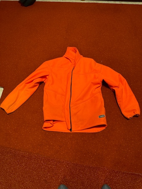 Jagdjacke XL in orange der Firma Grube, Made in der Schweiz in einem gebrauchten Zustand.