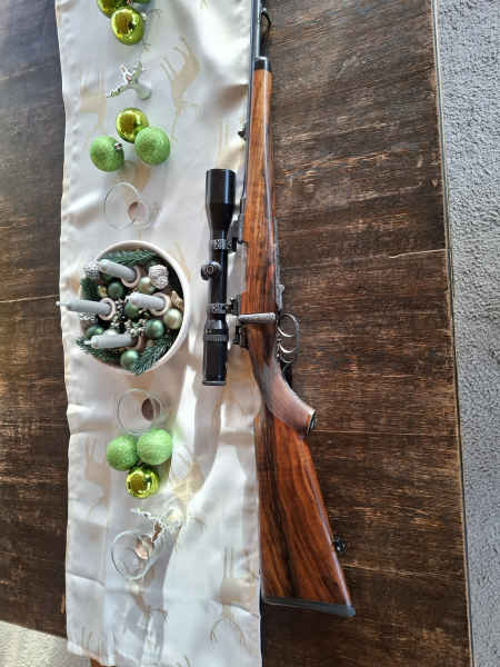 Ferlacher Repetierbüchse 98 im Kaliber 8x57IS. Beschuß 1952. Schöne Gravuren. Neu geschäftet mit Luxus Schaftholz. Zusätzliche Pirsch-Sicherung auf dem Kolbenhals. Sehr gute Schussleistung. Mit Klappdeckelmagazin. Neu montierte Schwenkmontage mit ZF Schmidt&Bender 4-12x42 / 4. Das ZF hat leichte Gebrauchsspuren, aber Optik und Mechanik einwandfrei. Weitere Bilder per Whatsapp möglich, Besichtigung möglich und erwünscht. Einschießmunition vorhanden. Privatverkauf ohne Gewähr und Rücknahme.