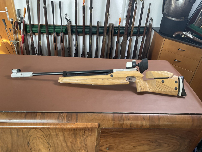 Zum Verkauf steht ein Luftdruckgewehr der Marke Feinwerkbau, Modell 602, im Kaliber 4,5 mm (.177) mit Linksschaft. Die Waffe ist ausgestattet mit einem Sportdiopter sowie einer höhenverstellbaren Schaftbacke. Der Zustand ist sehr gut, auch technisch befindet sich das Luftdruckgewehr in sehr gutem Zustand.