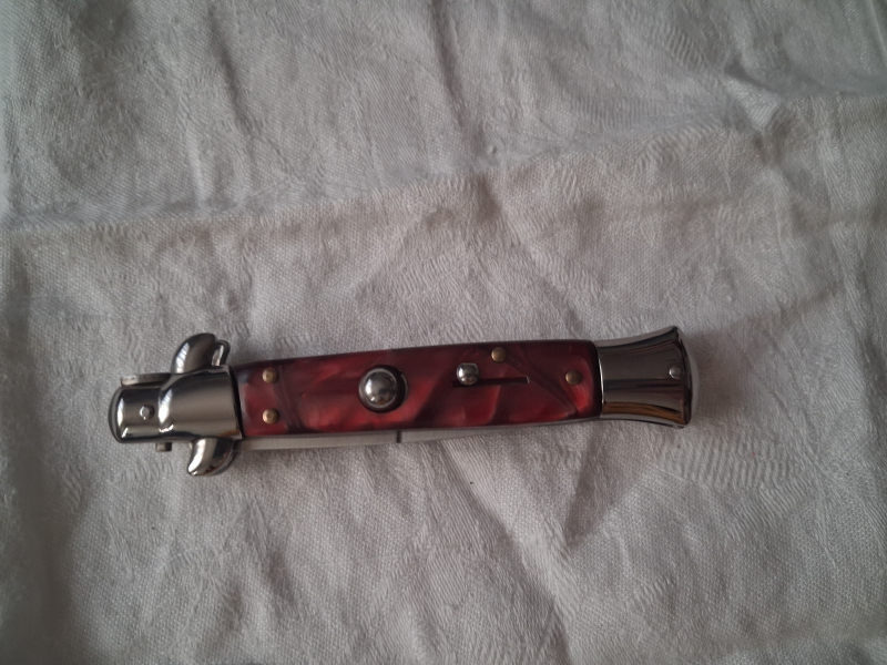 Biete hier ein rotes Italienisches Springmesser in Top-Zustand an. Kein Billig Ding sieht man auch an der Verarbeitung. Stramme Sicherung, Super Klinge einfach gut.