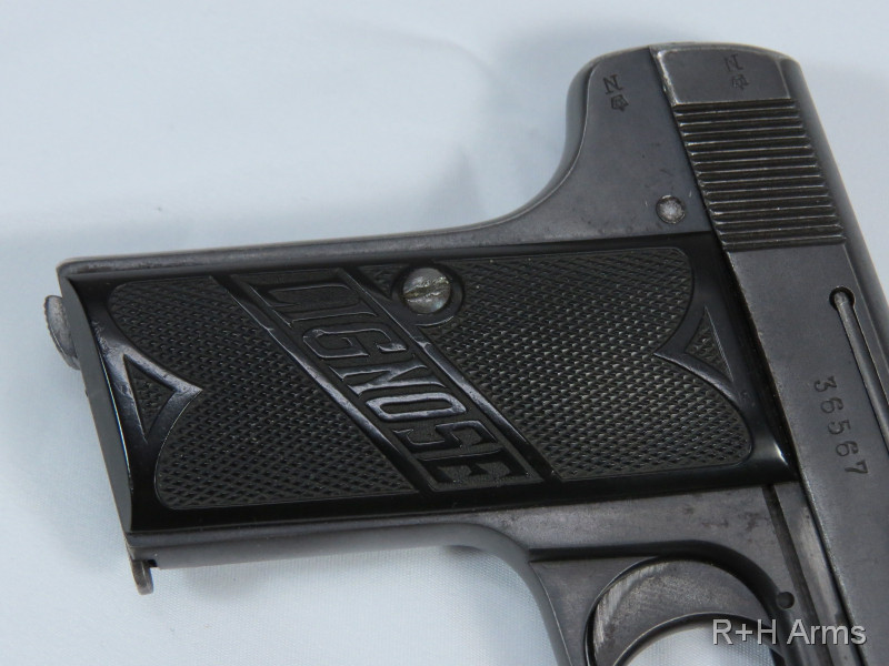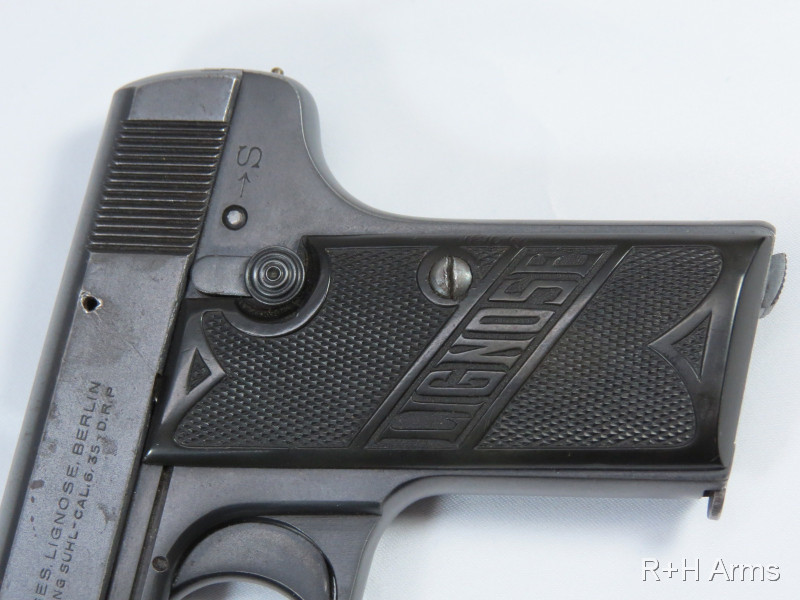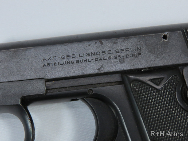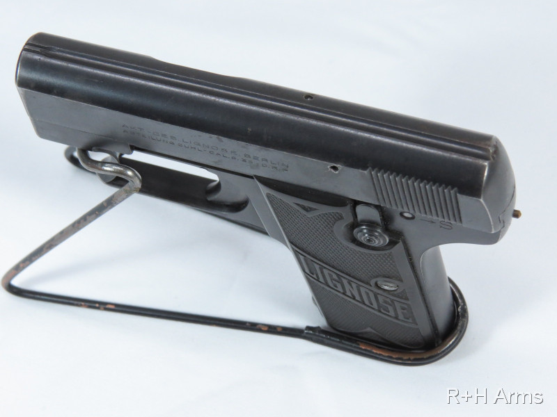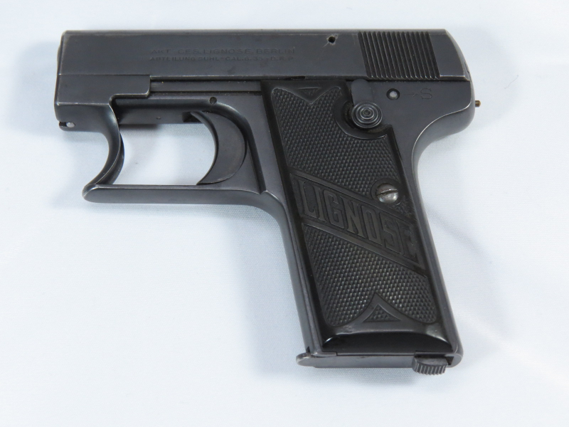 Pistole Lignose Einhand. Kal. 7,65. Lauf gut blank. Gebrauchter Zustand mit Gebrauchsspuren siehe Bilder. Verkauf nur an EWB.