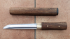 Einfaches Tanto-Messer in Rosenholz-Shirasaya, doppelt gedübelt, mit scharfer Kohlenstoffstahlklinge. Habaki aus Messing.
