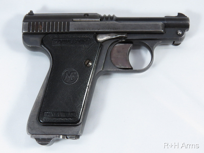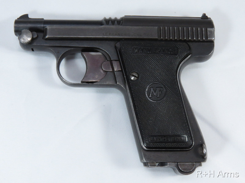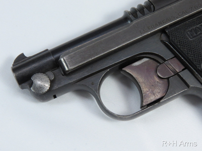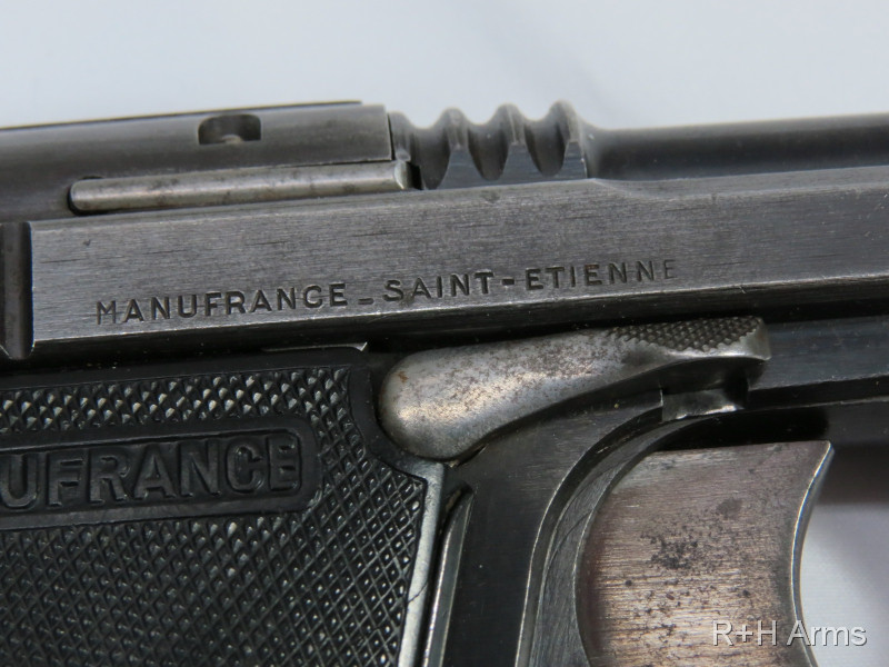 Pistole Manufrance Le Francais. Kal. 7,65. Lauf gut blank. Gebrauchter Zustand mit Gebrauchsspuren siehe Bilder. Verkauf nur an EWB.