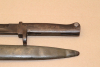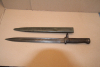 Ersatzbajonett,Klinge durchgehend leicht porig,Drücker ok,Eisengriff mit Patina und stellenweise porig.Scheide hatt koppelhaken seitig im unteren Bereich eine leichte Delle und drückerseitig drei Dellen.