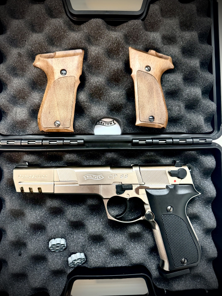 Verkaufe wenig gebrauchte Walther CP88 Competition in super Zustand. Fast nie geschossen. Sehr präzise. Die Holzgriffschlen sind nicht Bestandteil der Auktion, können aber gegen Aufpreis mit erworben werden.