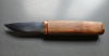 stabilisiertem heimischen Apfelholz gefertigt. Die Lederscheide ist handgenäht mit handlicher beweglicher Gürtelschlaufe.