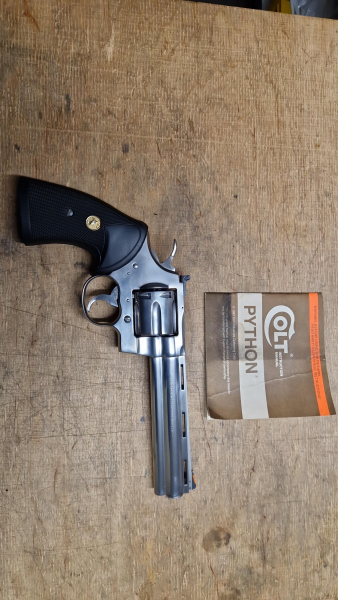 Sie bieten auf einen Colt Python, .357 magnum, 6 Zoll, stainless steel, BJ 1987.