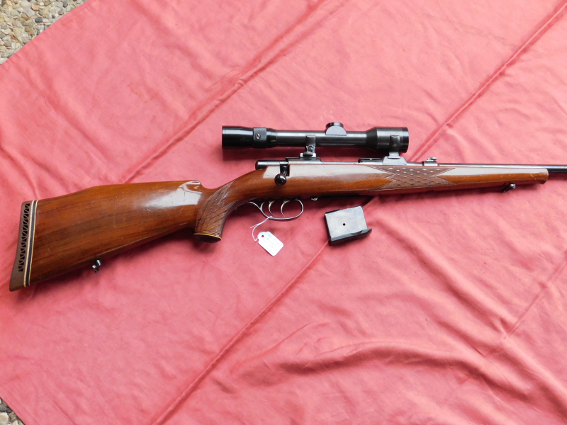 Anschütz Modell 1531 / 32 Kal. 222 Rem. mit ZF Hertel und Reuss 4x36 Abs 1 ( dieses ist kostenlos dabei ) auf Suhler Einhakmontage, Mehrlader mit Magazin, Lauf innen spiegelblank Profil scharf, Beschuss vorhanden. Sehr schöner Zustand.