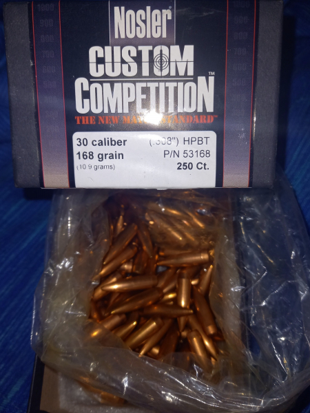 Sie bieten auf 150 Stück Geschosse (gezählt) .30 Nosler Custom 168grs,genauso präzise wie Sierra MK,