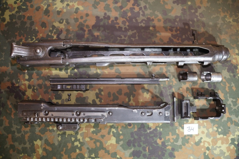Achtung, aufgepasst: Sie bieten hier auf eine echte Rarität, ein original MG53 DEKO Gehäuse. Das vordere Visier BW ergänzt. Direkt unter dem Kurvenstück zerschnitten (welches vorher abgebaut wurde), somit unbrauchbar! (Es handelt sich um einen sehr dezenten ca. 1mm Trennschnitt!). Zum Angebot gehört der original MG53 Rohrvorholer, welcher vor dem Zerschneiden ausgebaut wurde, inkl. Verschraubung und 2 Rohrführungshülsen ( 1 x MG1 1 x MG53). Zustand, siehe Fotos. Absolut selten gewordene Gelegenheit für Sammler auf ein Originalteil. Freies Ersatzteil ohne waffenrechtliche Eigenschaften! Versandkosten innerhalb Deutschlands 10 Euro, Versand ins EU-Ausland 22 Euro. Beschreibung nach bestem Wissen und Gewissen. Privatverkauf!
