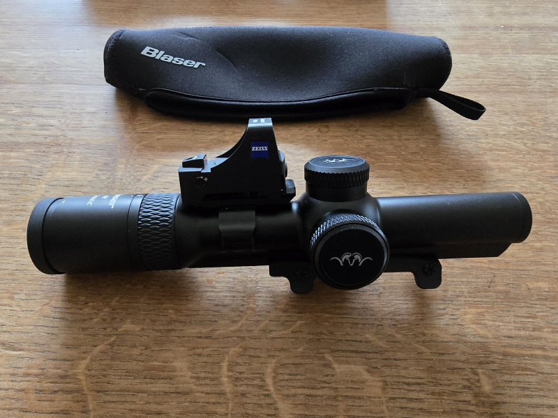 Biete das viel zu wenig genutzte Drückjagd-Glas Blaser B2 1-6x24, da ich den zugehörigen Repetierer verkaufe und das Glas wegen Überbestand nicht mehr brauche. Das Angebot bezieht sich ausschließlich auf das B2 1-6x24. Die auf den Bildern zu sehenden weiterern Gegenstände (zB Zeiss Compact Point mit Montage und Blaser Sattelmontage) sind Gegenstand anderer Auktionen. Die Teile können aber auch zu einem Set-Preis vergünstigt verkauft werden. Bei Interesse bitte Kontakt aufnehmen.