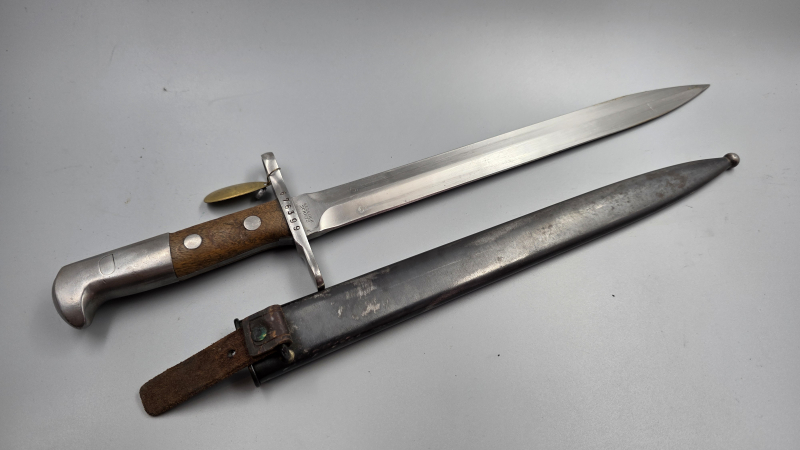 BAJONETT, Modell 1889/96, Hersteller Elsener Schweyz. Stammt aus einer Sammlungsauflösung. Zustand siehe Fotos, diese sind Bestandteil der Artikelbeschreibung. Bei Fragen bitte einfach mailen