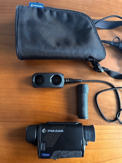 Wärmebildkamera Pulsar Axion XQ30 Pro mit 2 Akku, Ladegerät und Tasche.