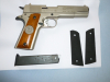 COLT Government 1911 A1 Schreckschusspistole, Kal. 9mm P.A.K. , 8 Schuss Magazin, Holzgriffschalen mit Quater- Dollar Münze Rechts und Links, Kunststoffgriffschalen, Bedienungsanleitung und Transportkoffer werden mitgeliefert. Waffe sehr gepflegt und nur einmal benutzt (siehe Bilder). Privatverkauf: Keine Garantie, kein Umtausch, keine Rücknahme.