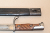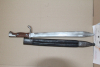 98/05 A.A.W15 Hersteller:Simson Suhl.Klinge mit leichten Anschliff ohne Kerben.Griffschalen und Drücker ok.Lederscheide getragener Zustand die Naht ist durchgehend leicht auf.Mundblech koppelhaken seitig porig,Rückseite feinporig.Ortblech feinporig mit 35mm langen riss an der Schmalseite.
