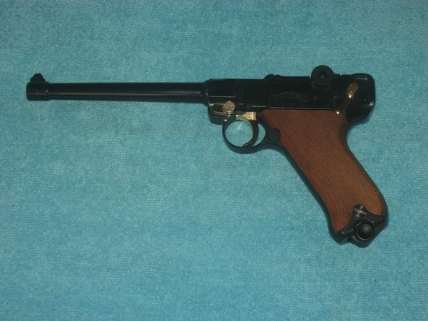 Verkaufe eine wunderschöne IWG P04 mit Glanzbrünierung (lange Luger P08) aus dem Jahre 1996 mit OVP und der Bedienungsanleitung.