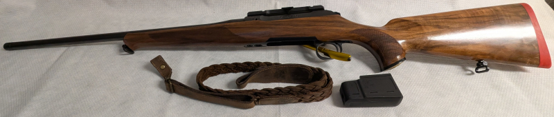 Die elegante, klassische Sauer 101 Repetierbüchse. Die S 101 Elegance besticht durch den Schaft in edlem Walnussholz der Schaftholzklasse 4. Die rote Schaftkappe verleiht der Waffe das gewisse etwas.
