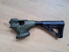 Und damit ihr auch auf 25m Freude habt ist als Goodie ein individuell gefertigter Anschlagschaft dabei. Schichtholz mit Milspec-BufferTube und -Hinterschaft. Passt mit der original Steyr-Einlage und -Schraube (die ihr ja im Griff habt). Ggf. müsst ihr noch eine kleine zusätzliche Einlage verwenden. Oder eben die schraube hart anziehen. :-)