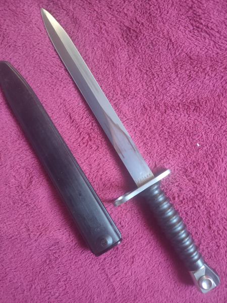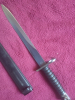 Bajonett mit Kunststoffgriff und Kunststoff Scheide. Verriegelung gängig. Beschriftung Hersteller: F+W, W467498 auf dem Bajonett. Wird ein Nachbau sein. Ich kenne mich da nicht aus.
