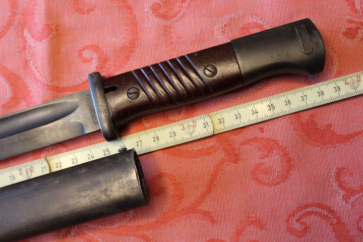 Im Fundzustand. Nicht für die Auktion irgendwie geschönt. Noch nicht Gereinigt. Der Drücker ist Leichtgängig . Komplett Original. Die Scheide und das Bajonett haben den selben Hersteller und Seriennummer. Zustand siehe die Bilder. Model ohne Feuerplatte!!! Porto EU= 19,50€