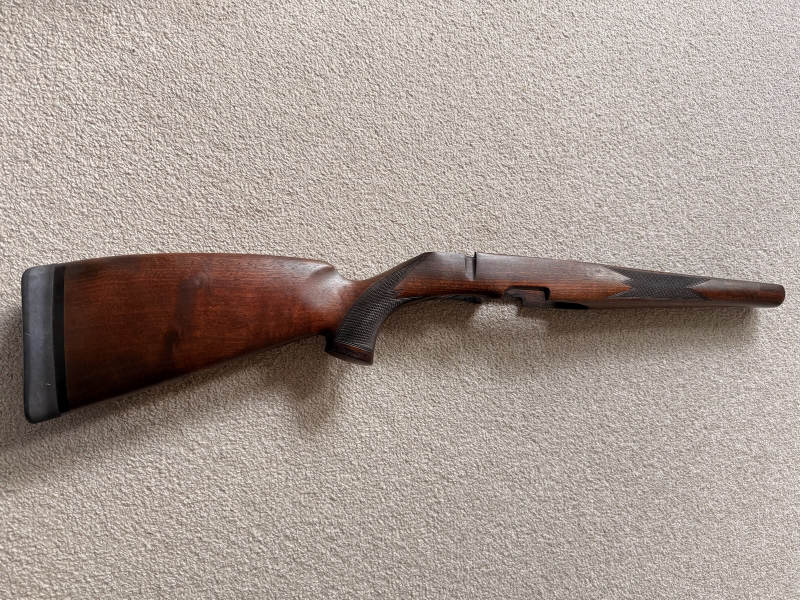Holzschaft Nußbaum für Steyr Mannlicher Repetierer Modell M (Makrolon-Abzugsbügel mit Trommelmagazin) gebraucht, mittlere Gebrauchsspuren, Gummischaftkappe Wegu 30 mm schwarz, Schaftlänge 37,5 cm inkl. Schaftkappe.