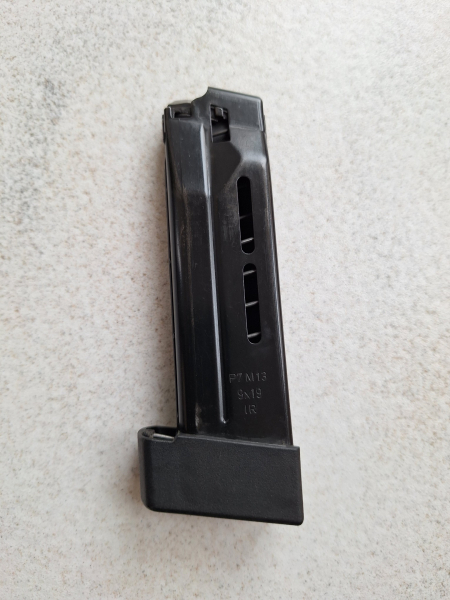 Sie bieten auf ein gebrauchtes Magazin mit normalen Abnutzungsspuren für Pistolen des Typs Heckler & Koch Modell P7 M13, Kaliber 9 mm x 19 Luger/Parabellum. ORIGINAL HK Fertigung. Feder stramm, Funktion selbstverständlich gegeben. Der HK Magazinboden wurde ausgetauscht ! (siehe Bilder). Versand nur innerhalb Deutschlands, kein Export, auch nicht in andere EU-Länder. KEINE ABHOLUNG MÖGLICH. Da es sich um einen Privatverkauf handelt, der keinen gewerblichen Hintergrund hat, ist jede Garantie oder Gewährleistung ausdrücklich ausgeschlossen; ebenso ist eine Rücknahme der Ware nicht möglich oder mit anderen Worten: DER VERKAUF ERFOLGT UNTER DEM AUSSCHLUSS JEGLICHER SACHMÄNGELHAFTUNG. Mit der Abgabe eines Gebotes akzeptieren Sie diese Bedingungen; bitte bieten Sie also nicht, wenn Sie mit den vorgenannten Bedingungen nicht einverstanden sind. MyGun ist Bestandteil dieser Auktion.