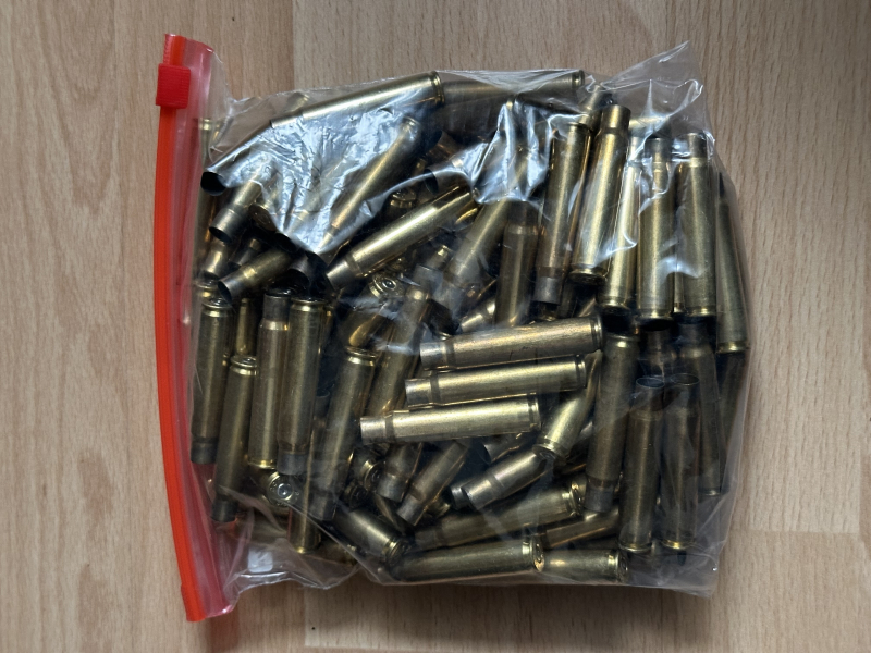 Es liegen auch ein paar Extrahülsen bei (als Wiederlader will man ja auch gerne mal eine Testladung machen). Nur einmal abgeschossen und nicht wiedergeladen.