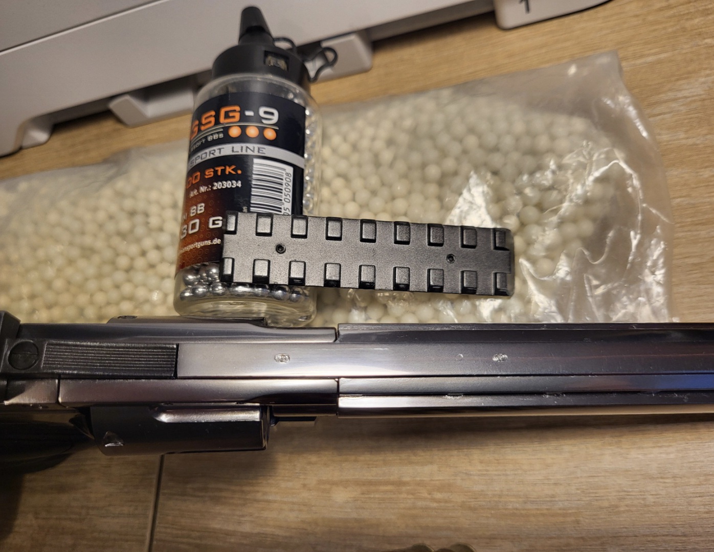 Dan Wesson 6" CO₂ Revolver 6mm BB Vollmetall silber + 31 Patronen + Holster + Picatinny + viele BBs ||| Ich verkaufe hier meinen Dan Wesson 6" CO₂ Revolver in silber (Vollmetall), Kaliber 6 mm BB. Sehr schweres, wertiges Modell – ideal für Plinking / Sammlung. ||| Zustand: Gebraucht, voll funktionsfähig, geringe Gebrauchsspuren vorhanden, u.a. zwei Abdrücke/Madenschrauben-Spuren von der Picatinny-Schiene (siehe Foto) - Dichtungen wurden erneuert - Patronen: 31 Patronen/Hülsen mit Lagerungsspuren, funktionieren aber einwandfrei (nur optisch mit Patina, siehe Foto), Patronen wurden zur Pflege mit Waffenöl behandelt ||| Lieferumfang (wie abgebildet): Dan Wesson 6" CO₂ Revolver, Vollmetall, silber - 31x Patronen/Hülsen - Holster/Halfter - Picatinny-Schiene - 6 mm BBs in hoher Stückzahl (Beutel + Flasche, siehe Bilder) ||| Altersnachweis: Verkauf ausschließlich an Personen ab 18 Jahren. Altersnachweis erforderlich (Ausweiskopie geschwärzt bis auf Name/Geburtsdatum genügt). ||| Versand: Versand nur innerhalb Deutschlands - Abholung möglich nach Absprache ||| Privatverkauf / Rechtliches Privatverkauf unter Ausschluss jeglicher Sachmängelhaftung / Gewährleistung. Keine Garantie, keine Rücknahme, kein Umtausch.