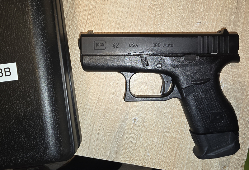 Hallo, biete hier eine Glock 42 .380 auto, 6mmBB, gas an, in schwarz. Die waffe hat Blowback, hat keine gebrauchspuren, waffe ist aus Metall mit polymer body, sie ist dicht und hat ein F zeichen. Mit dabei ein Waffenkoffer, eine magazinschuh verlängerung ist verbaut original schuh ist dabei. Was aussieht wie Flecken auf der waffe sind nur Öl Spuren von der Pflege. Waffe ist ungeschossen.