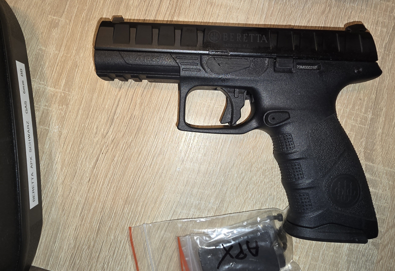 Hallo, biete hier eine Beretta APX, 6mmBB, gas an, in schwarz. Die waffe hat Blowback, hat keine gebrauchspuren, waffe ist aus Metall mit polymer body, sie ist dicht und hat ein F zeichen. Mit dabei ein Waffenkoffer, adapterplatten für red dot. Was aussieht wie Flecken auf der waffe sind nur Öl Spuren von der Pflege. Waffe ist ungeschossen.