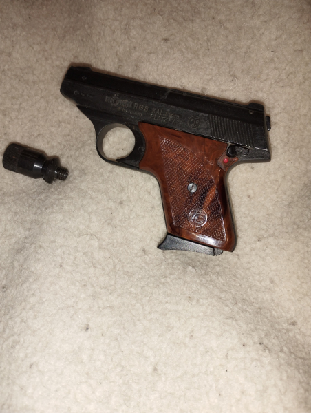 Der Klassiker!Schöne alte 8mm Pistole der Fa. Röhm.Sie macht immer noch was sie soll und ist auch ein bisschen angegriffen(benutzt),was aber auch den Charm dieser Pistole ausmacht.Deswegen ist diese Pistole für den Sammler wie für den user gleichermaßen interessant.