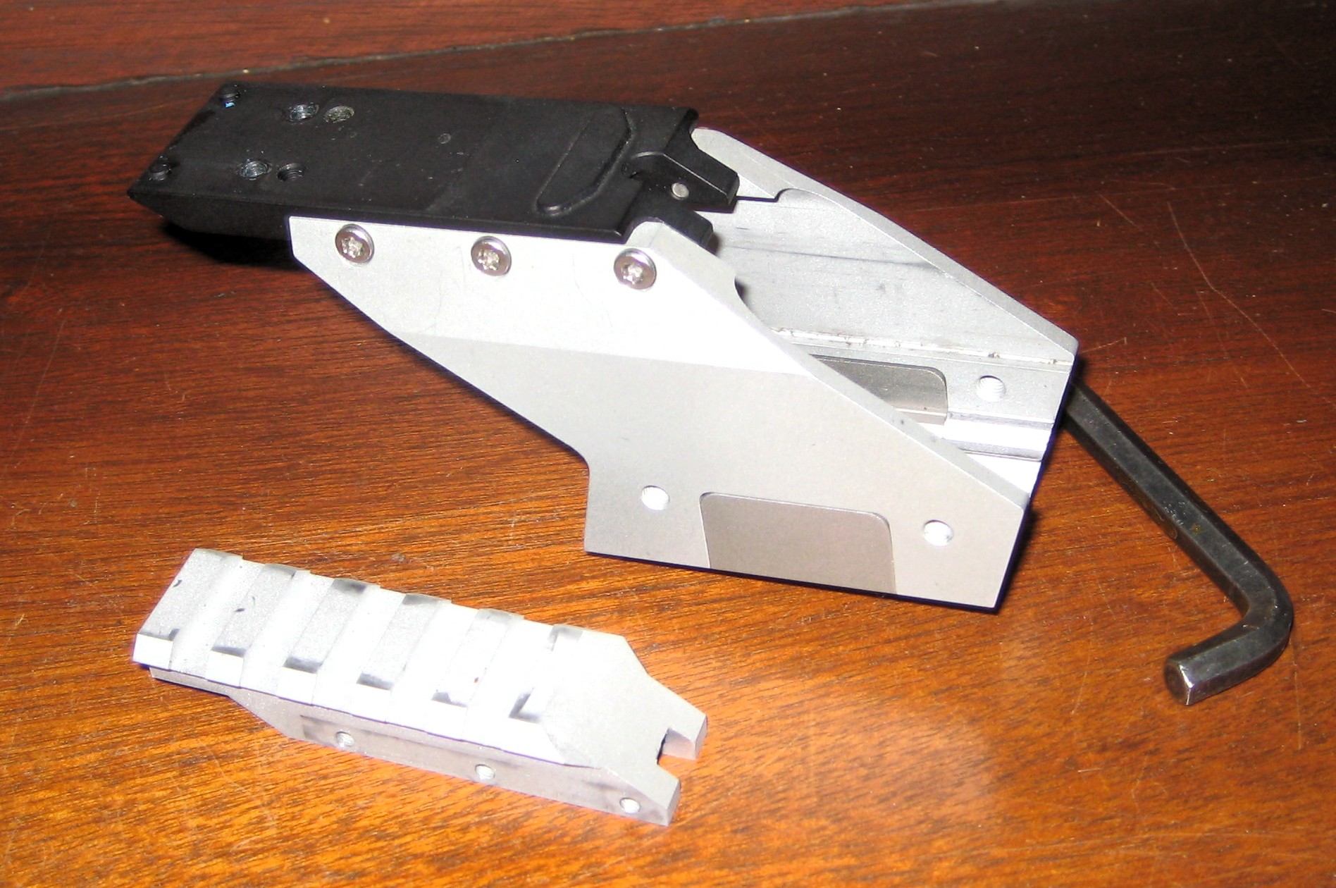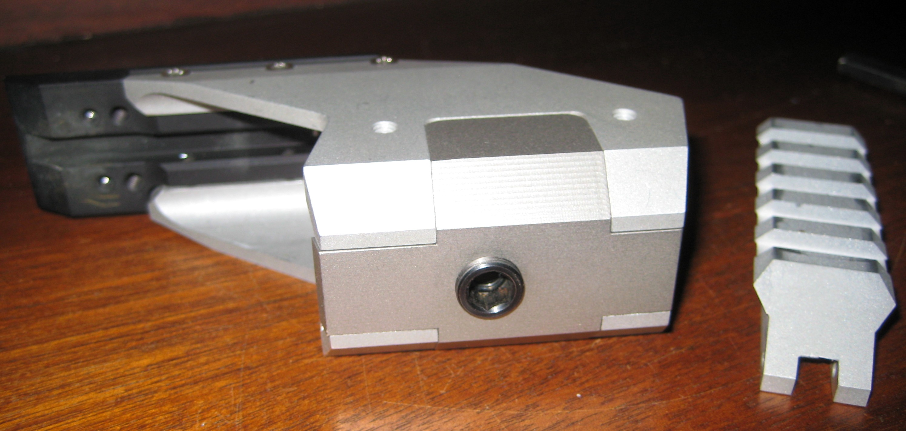 die zweite Montageplatte ist eine Picantiny-Schiene auf der sich unterschiedlichste Optiken montieren lassen.