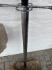 • Gesamtlänge: ca. 120 cm • Klingenlänge: ca. 96 cm • Grifflänge: ca. 24 cm • Gewicht: ca. 1,4 kg • Klinge: Stahl, leicht geschärft & spitz • Griff: Lederbezug, nicht abschraubbar • Parierstange: gerade mit beidseitigen Fingerringen • Knauf: Kugelknauf mit Spiralstruktur • Hersteller: ohne Angaben