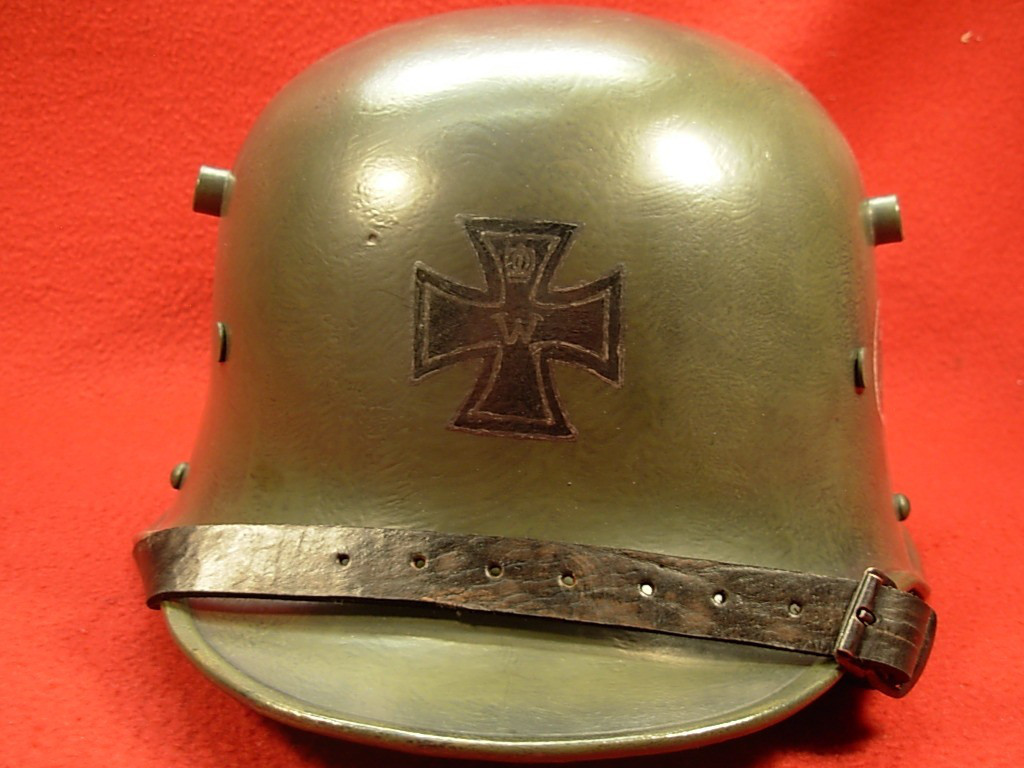 I.WK – Stahlhelm mit Eisernem Kreuz und MG Abzeichen 08/15 – Hörnerhelm –––––- Zustand siehe Bilder . Artikel stammt aus Sammlungsauflösung. Bei Fragen bitte Mail-