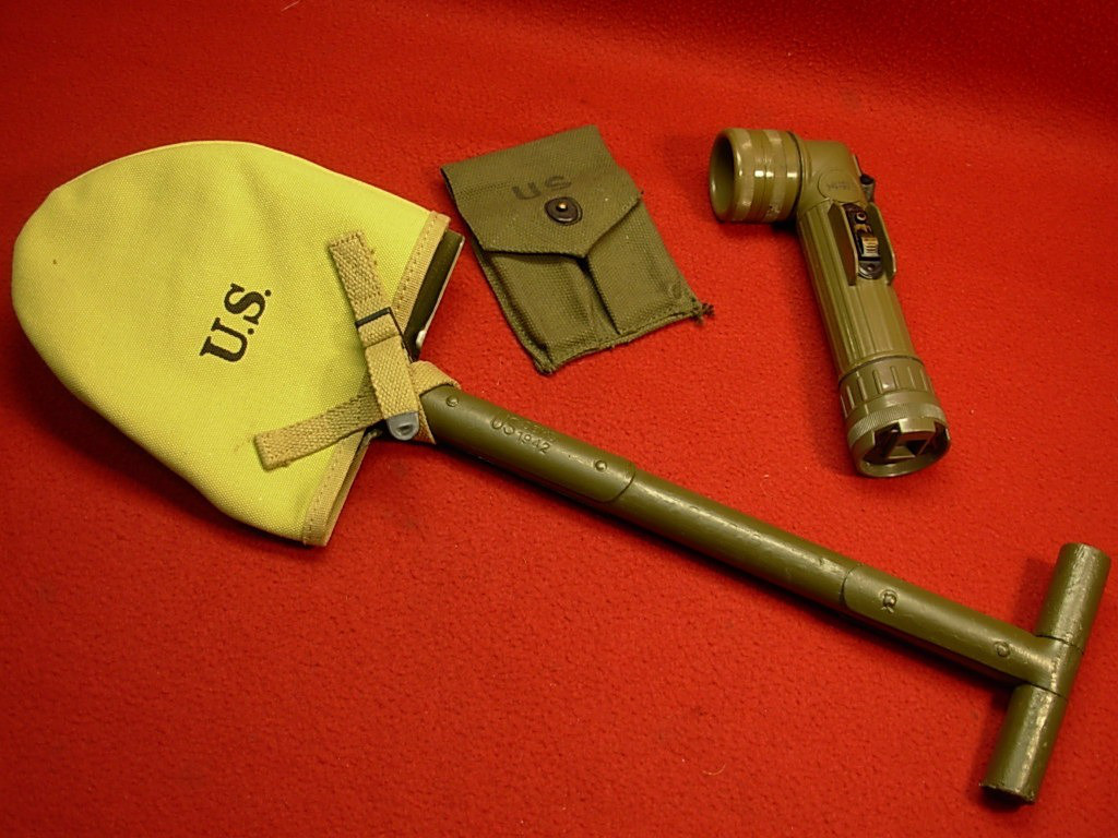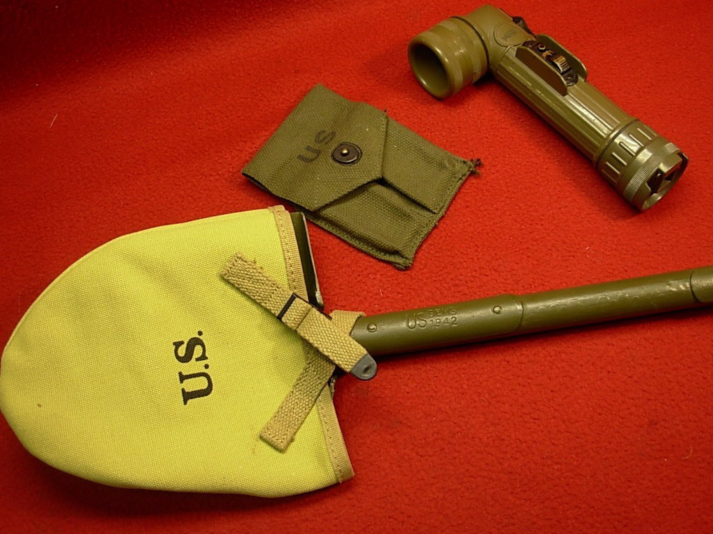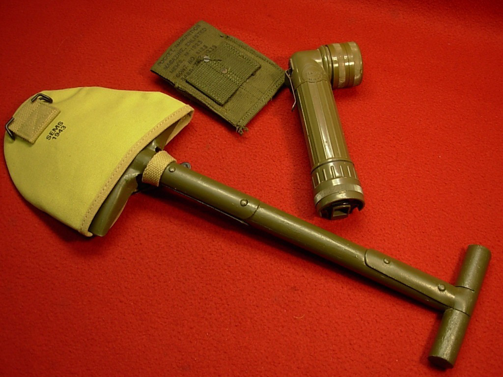 II.WK – USA – Vietnam – Ausrüstung – Spaten – Taschenlampe – Magazintasche – schöner Zustand –