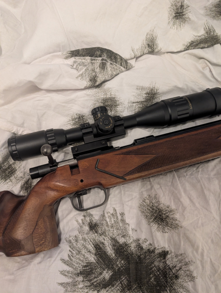 Das Zielfernrohr ist von der Marke Diana 4-16x44 mit einem beleuchteten Half MilDot Absehen mit 1/4 Moa Verstellungen