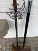 Elegantes und sehr aufwendig gefertigtes Rapier im Stil der frühen Neuzeit, angelehnt an spanisch-italienische Originale des späten 16. bis frühen 17. Jahrhunderts. Auffälliges Swept-Hilt-Gefäß mit zahlreichen Schutzbügeln, kombiniert mit einer langen, schlanken Klinge aus Federstahl.