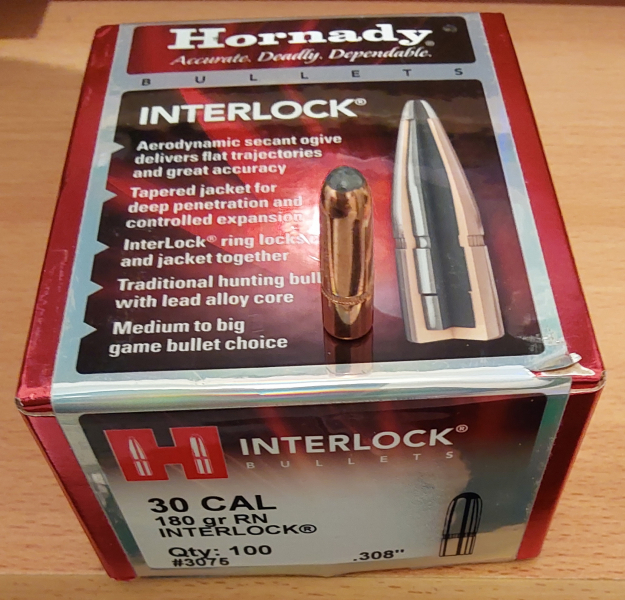Versteigere 78 Geschosse im Kaliber .308 der Firma Hornady. Die Interlock-Geschosse sind unter der Produktnummer #3075 genauer beschrieben.