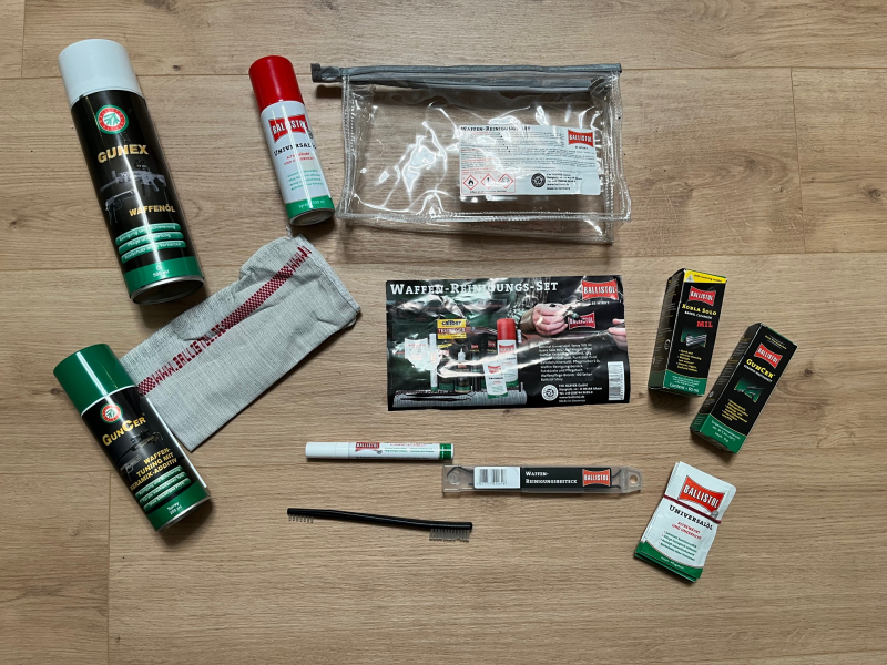 Sie können hier alles erwerben was Sie an Reinigungsmitteln für die Pflege ihrer Waffen benötigen sowie Putzbürste, Pflegetuch und Waffen-Reinigungsbesteck.