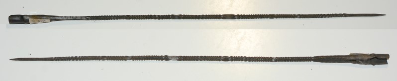 lange und dünne afrikanische Speerspitze, Eisen, mit Dornspitze, mit Tülle 56 cm, guter Zustand