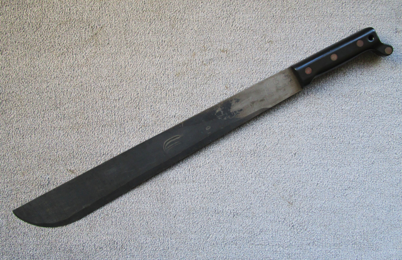 Biete hier diese originale US-Militär Machete ohne Scheide an, hergestellt von der „Shreck Wholesale Industries,“SWI“ im Jahre 1943, robuste Stahlklinge mit vernieteten dunkelbraunen Kunststoff-Griffschalen, Gesamtlänge: ca.59cm, Klingenlänge: ca.45,5cm, siehe dazu bitte die Fotos, diese Militär-Macheten wurden für verschiedenste Aufgaben im 2. Weltkrieg, sowie danach auch in Korea und Vietnam eingesetzt, sehr guter Originalzustand, Fragen gerne per email, Auslandsversand bitte vorher erfragen, allen Bietern viel Erfolg !