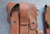 Biete hier diese 3 Magazintaschen für die MP38/MP40/MP41 aus braunem Leder an, norwegische Nachkriegsfertigung, eine Tasche innen mit Tintenstempel „MP38u.40“, guter gebrauchter Zustand. Bei einer der Taschen fehlen 2 Halteknöpfe, siehe letztes Foto dazu. Das Leder ist noch weich und auch die Nähte/Nieten sind fest und in Ordnung. Fragen hierzu gerne per email. Allen Bietern viel Erfolg
