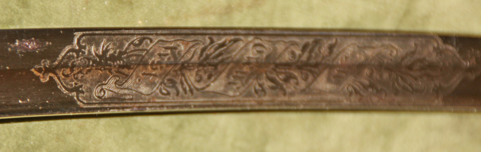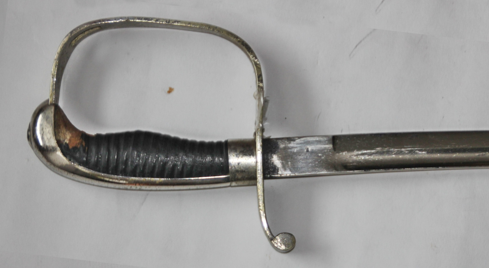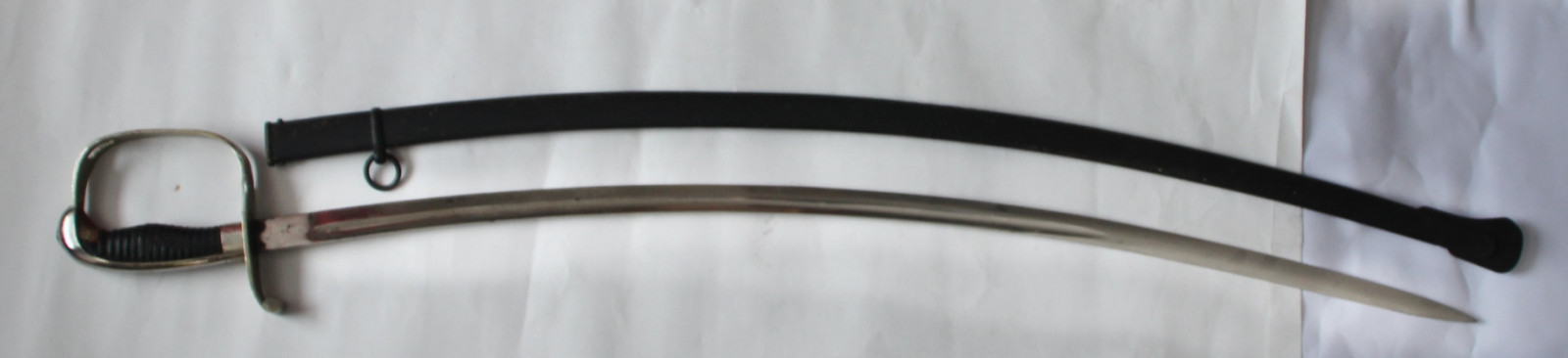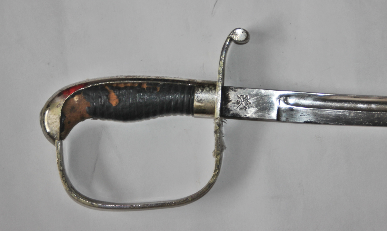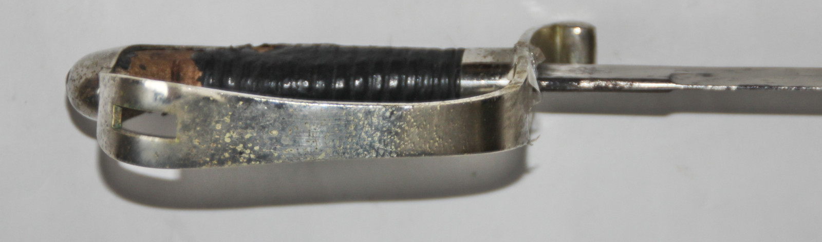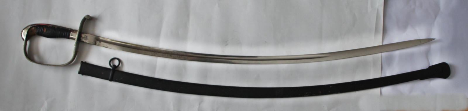 Bayrischer Artillerie-Extrasäbel, Modell 1859 ?? mit Scheide, die Klinge beidseitig mit einer Zierätzung mit dem bayrischen Motto "In Treue fest", auf der Fehlschärfe die Herstellermarke, die Klinge schön, an der Fehlschärfe teilweise abgplatzt und dort angerostet. Vernicklung an den Griffelementen stellenweise minimal blasig und rau, die schwarze Ummantelung defekt, teilweise fehlend. Die Scheide irgendwann verchromt, später nochmal schwarz lackiert, unter dem Lack teilweise rostnarbig. Bis auf die beschriebenen Mängel keine weiteren Mängel erkennbar. Mit wenig Aufwand gut verbesserungsfähig. Fotos sind Bestandteil der Beschreibung. Ac h t u n g !! D i e Q u a l i t ä t d e r F o t o s, d i e i c h z u B e g i n n d e r A u k t i o n e i n g e s t e l l t h a t t e w a r z u s c h l e c h t. D e s h a l b h a b e i c h n o c h m a l a l l e s n o c h m a l f o t o g r a f i e r t u n d n u n b e s s e r e F o t o s e i n g e s t e l l t. Alle Angaben nach bestem Wissen und Gewissen. Dies ist ein Privatverkauf. Gemäß EU-Recht unter Ausschluss von Gewährleistung und jeglicher Sachmängelhaftung. Der Käufer ist selbst verantwortlich für die Einhaltung der gesetzlichen Vorschriften / des Waffenrechtes seines Landes. Fragen bitte rechtzeitig vor dem Auktionsende stellen. Ich beobachte meine Auktionen und mein Mail-Postfach nicht permanent. Daher bei kurz vor Auktionsende gestellten Fragen keine Garantie auf eine rechtzeitige Antwort. Verkauf nur gegen Vorkasse. Banküberweisung oder PayPal (Bei Zahlung über PayPal erhöht sich der Kaufpreis um die von PayPal einbehaltene Gebühr, bei Zahlung mit der Option Geld an Freunde senden entfallen diese zusätzlichen Kosten) Bei Selbstabholung ist Barzahlung möglich. Die Versandkostenpauschale deckt außer den reinen Portokosten auch einen Anteil an Verpackungs und Fahrtkosten zum nächstgelegenen Paketshop. Versandkosten sind nicht verhandelbar. Die Versandkosten sind Kosten für den Inlandsversand. Versandkosten ins Ausland gemäß den aktuellen Preislisten der beauftragten Paketdienste sind höher.