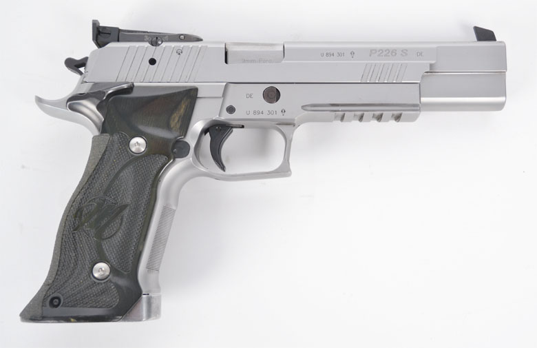 Original Sig-Sauer Mastershop P 226 X-Series PPC Griffschalen, verlängert und am Griffrücken Rutschhemmend beklebt.