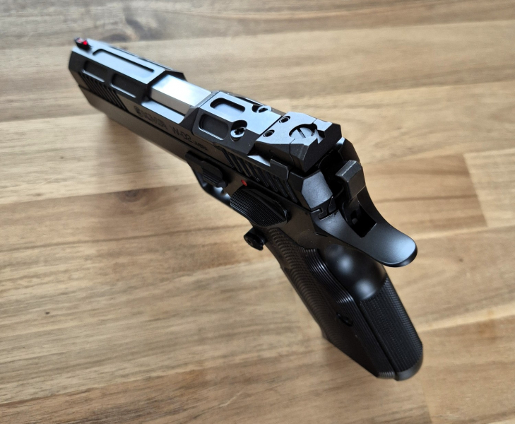 Die Waffe wurde einmal auf dem Stand geschossen (Schussbelastung ~50 Schuss) und wird wegen Hobbyaufgabe aus gesundheitlichen Gründen verkauft.