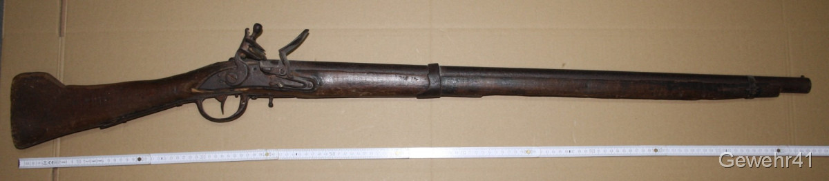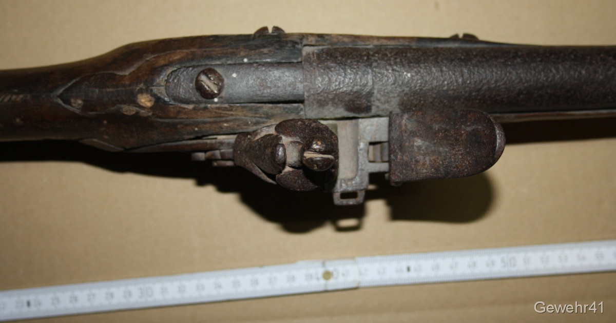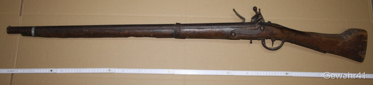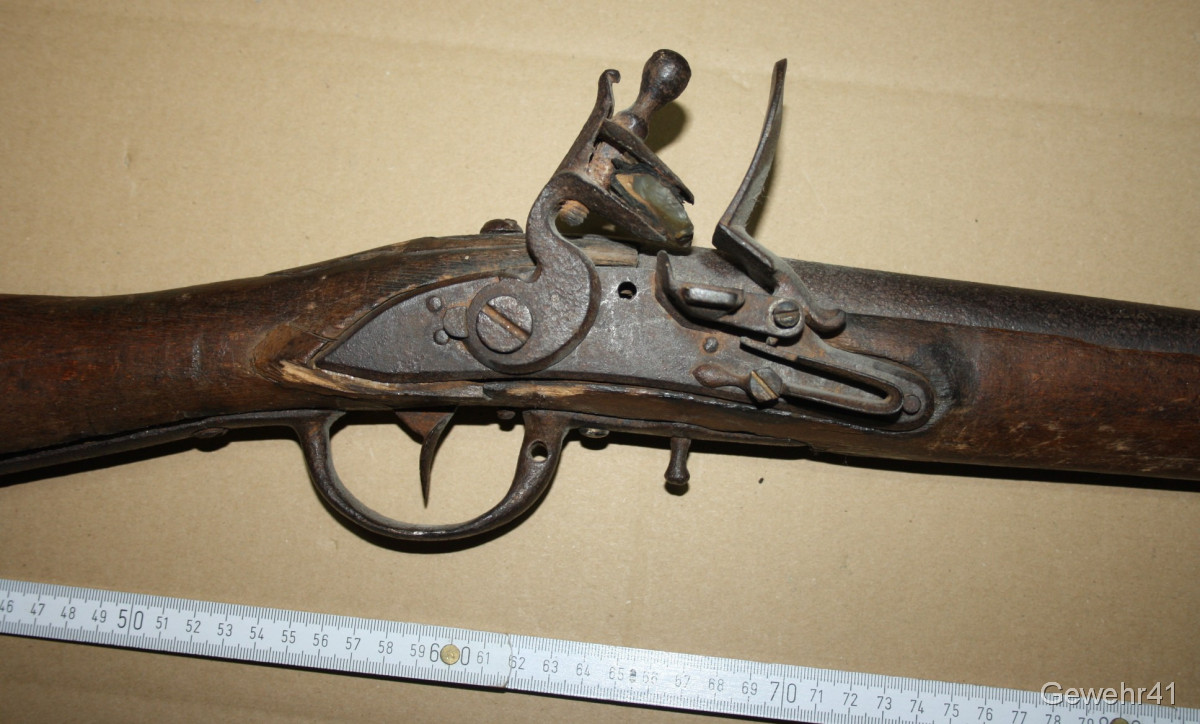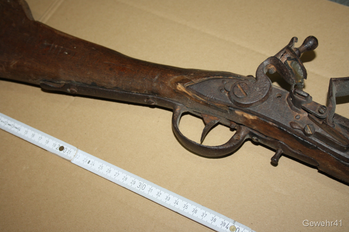 Sie bieten auf dieses mir unbekannte alte Steinschloss Vorderlader Gewehr im stark gebrauchten Zustand. Es kommt so direkt vom Dachboden und wurde nicht geschönt oder aufgearbeitet. Das Schloss funktioniert. Verkauf ohne Garantie und Gewähr.
