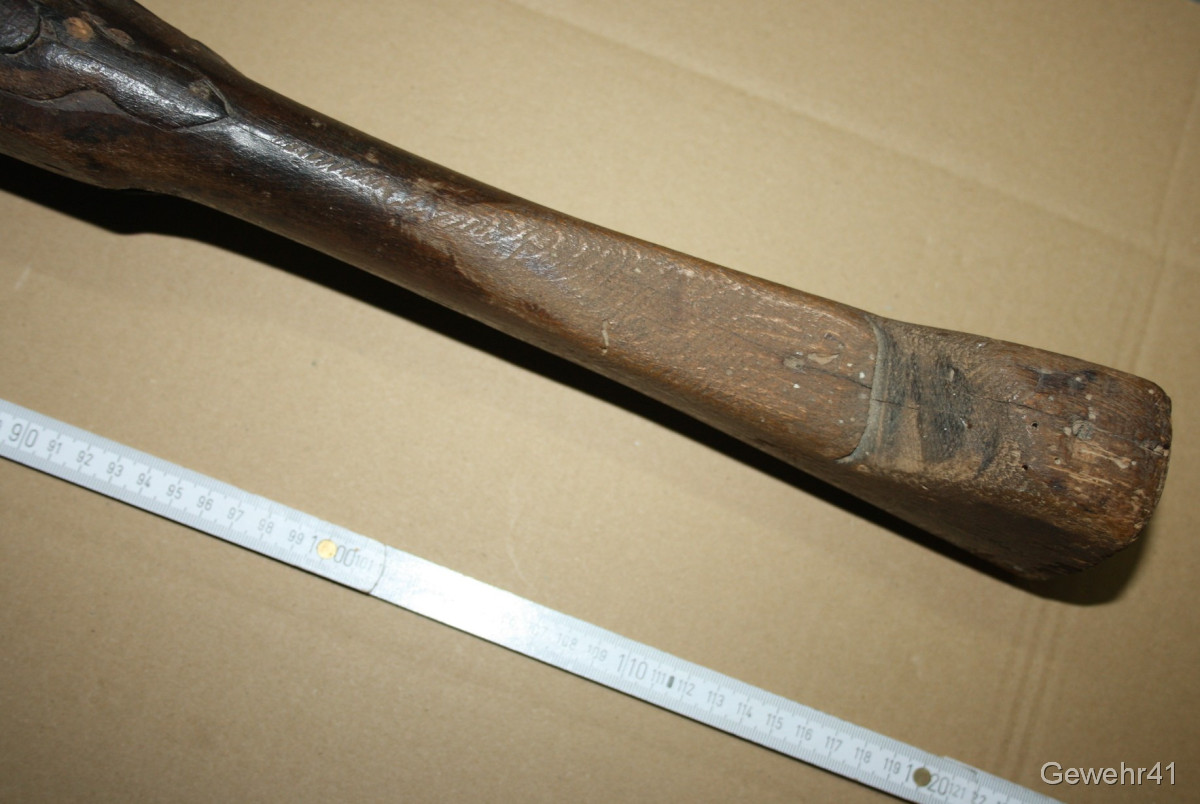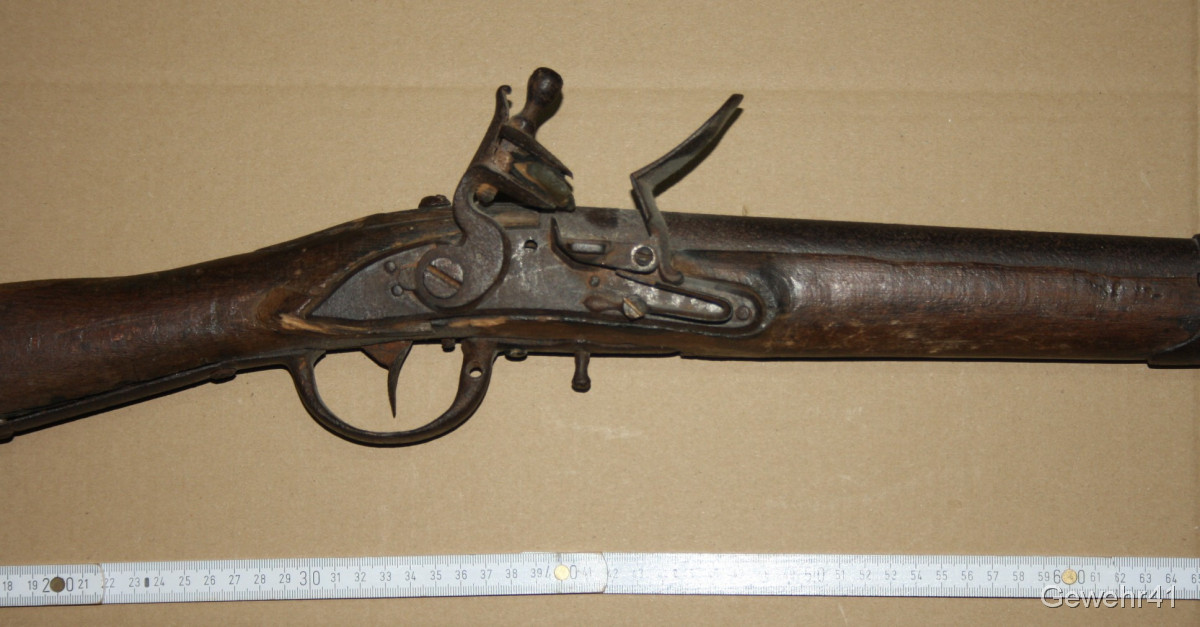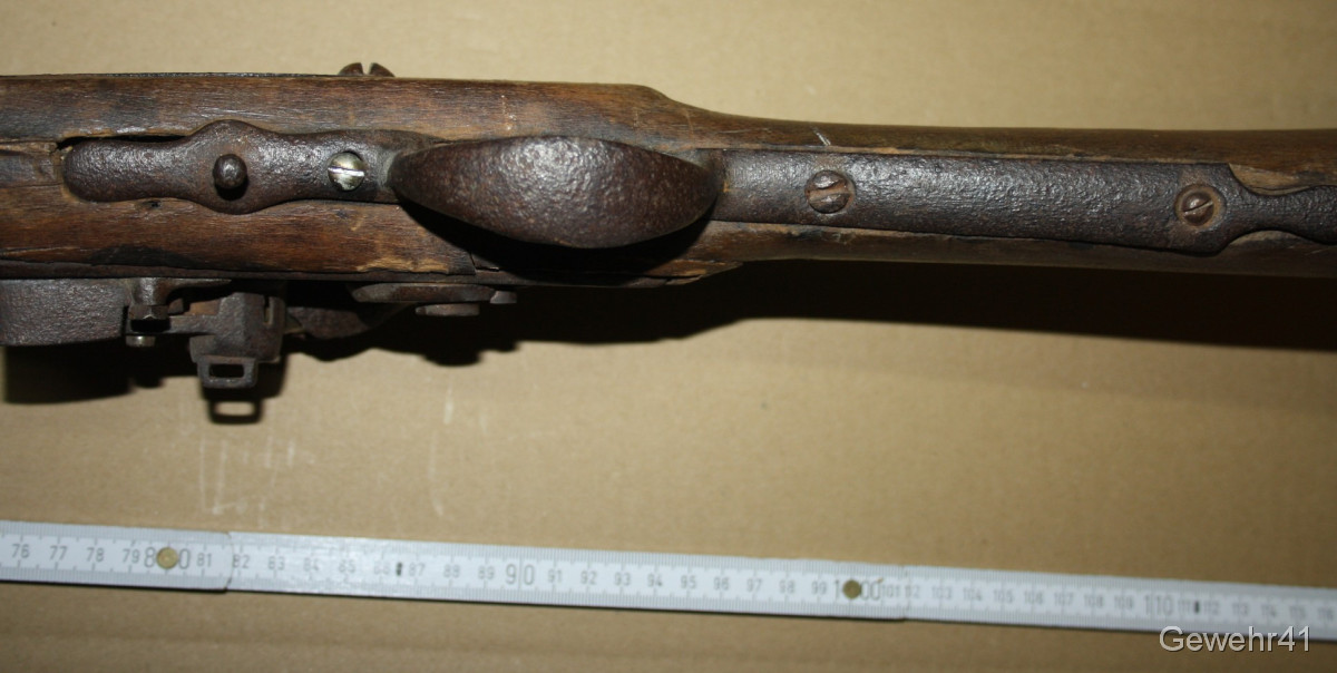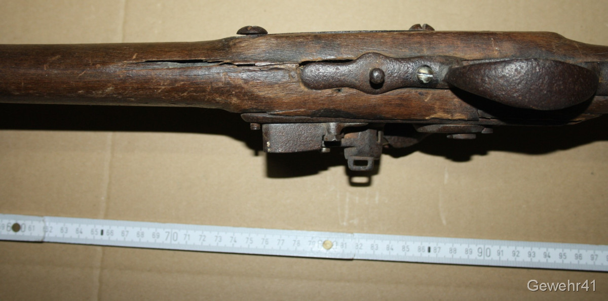 Sie bieten auf dieses mir unbekannte alte Steinschloss Vorderlader Gewehr im stark gebrauchten Zustand. Es kommt so direkt vom Dachboden und wurde nicht geschönt oder aufgearbeitet. Das Schloss funktioniert. Verkauf ohne Garantie und Gewähr.