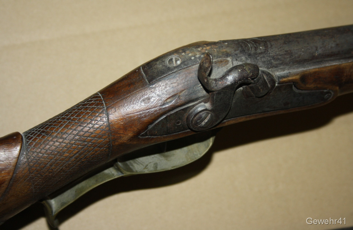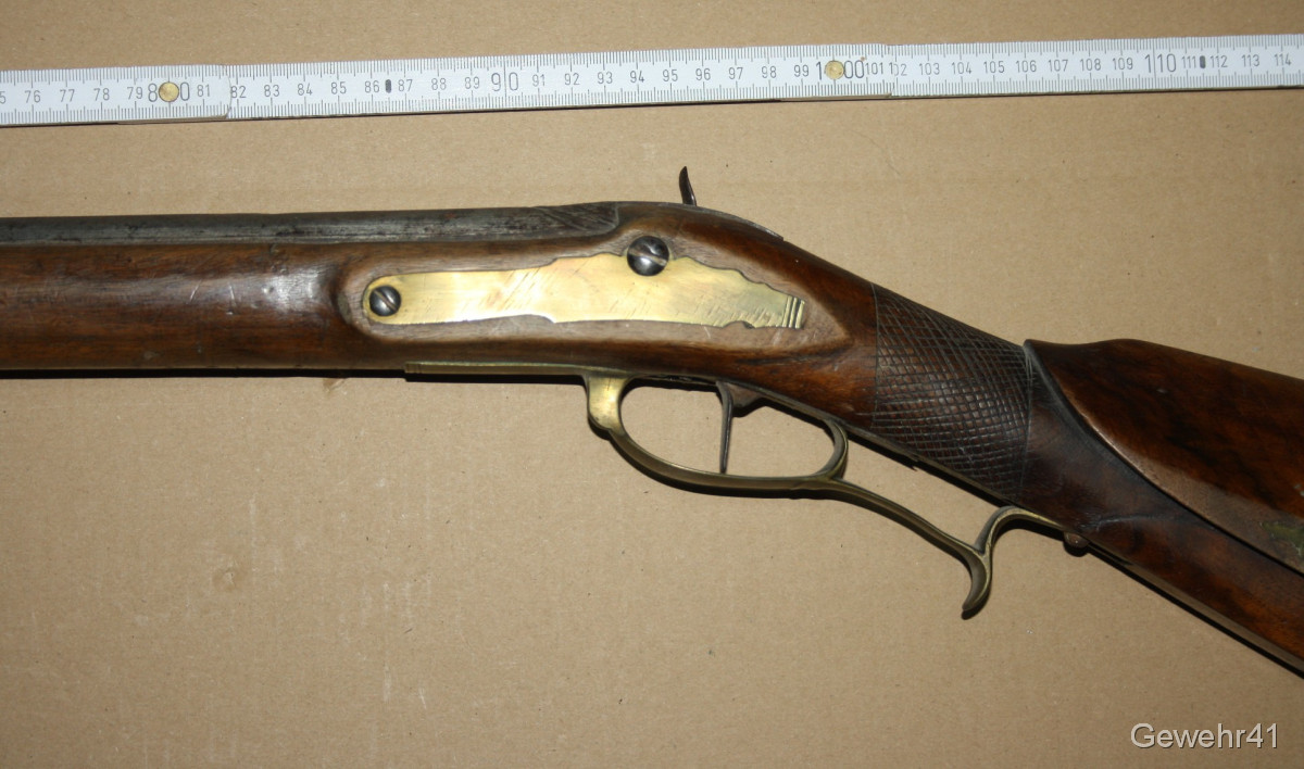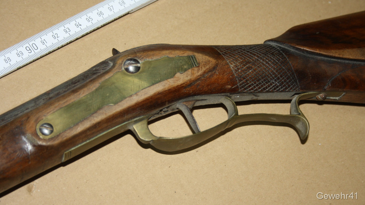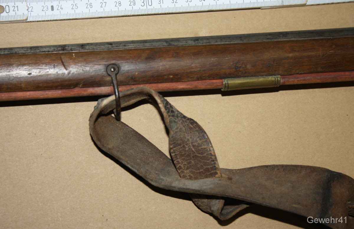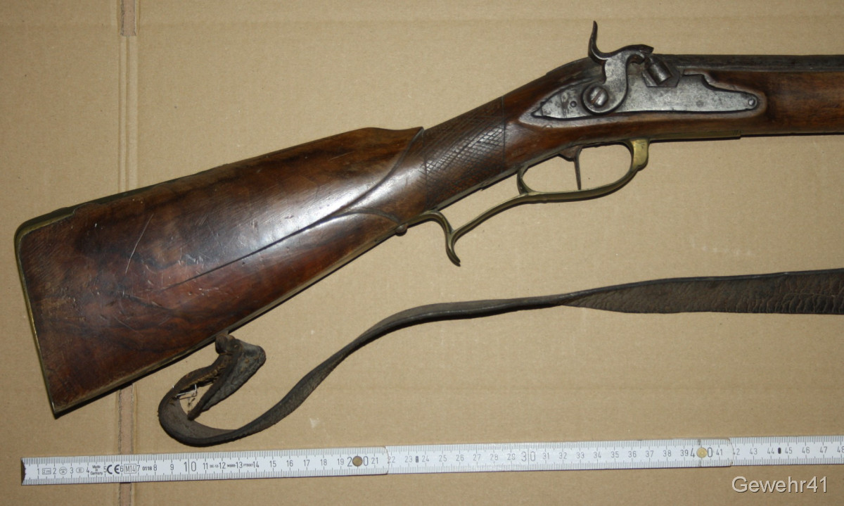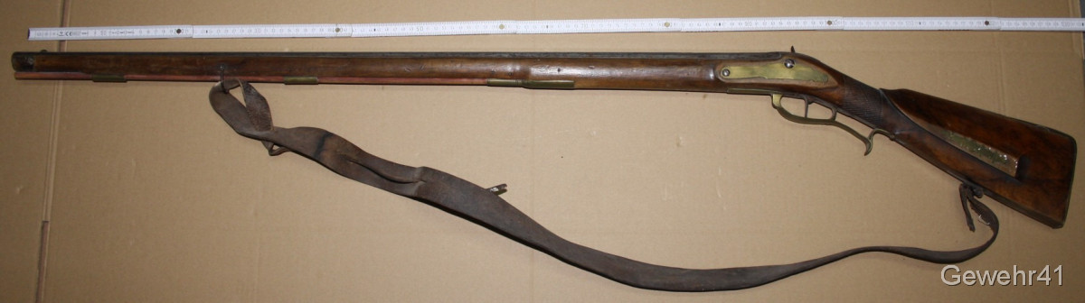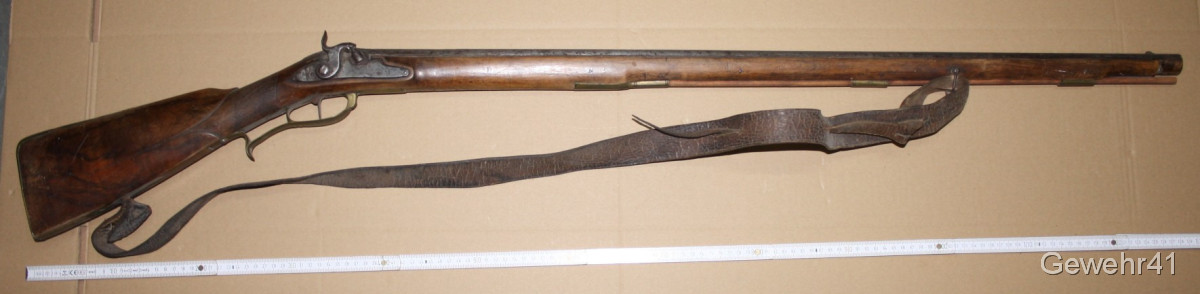 Sie bieten auf dieses mir unbekannte alte Perkussions Vorderlader Gewehr im stark gebrauchten Zustand. Es kommt so direkt vom Dachboden und wurde nicht geschönt oder aufgearbeitet. Das Schloss rastet leider nicht ein, die Feder hat aber Spannung und der Hahn ist beweglich. Verkauf ohne Garantie und Gewähr.