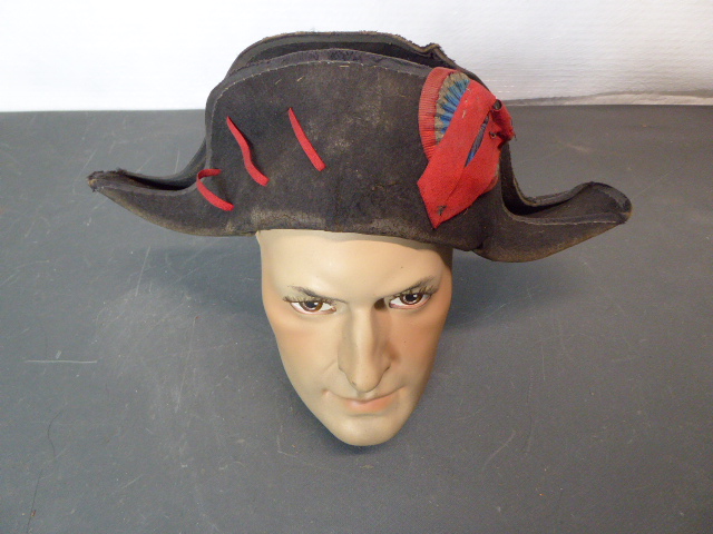 Alter unbekannter Zweispitzhut wahrscheinlich Original mit roter Litze und Nationale